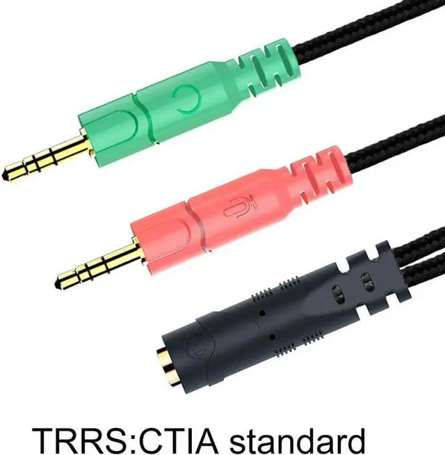 Connect: ENVEL 3.5 mm headset splitter allows you to connect your stereo headset to a PC audio port and mic port at the same time. One green plug for audio of your desktop/PC the other pink for microphone.