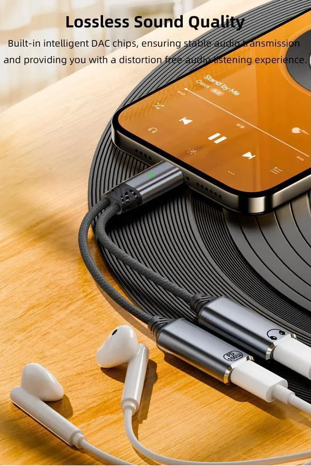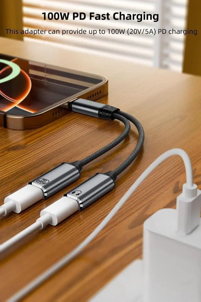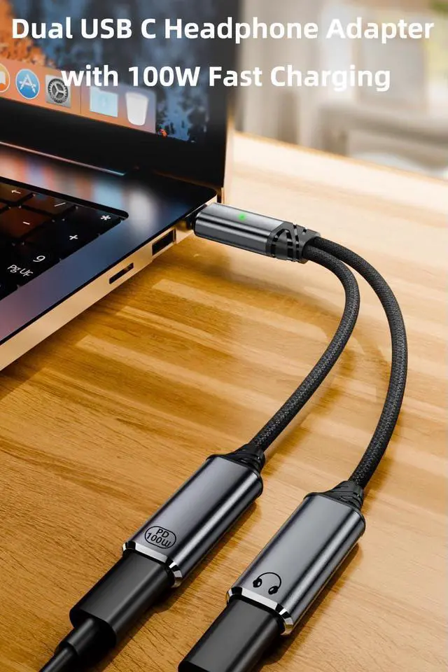 Important Note? Not Support any video transmission.? Not Support power output and only one port supports power input. 2-in-1 USB C Splitter with ChargingWhen you use this adapter to connect a USB C headphone flash drive card reader and other USB C peripherals to your USB C host device you can also charge the host device at the same time. 100W PD Fast ChargingThis adapter can provide up to 100W (20V/5A) PD charging It will not reduce the original charging speed of your device. Lossless Sound QualityBuilt-in intelligent DAC chips ensuring stable audio transmission and providing you with a distortion free audio listening experience.