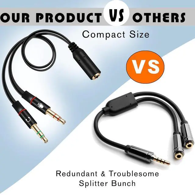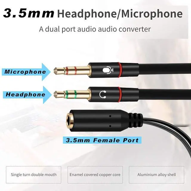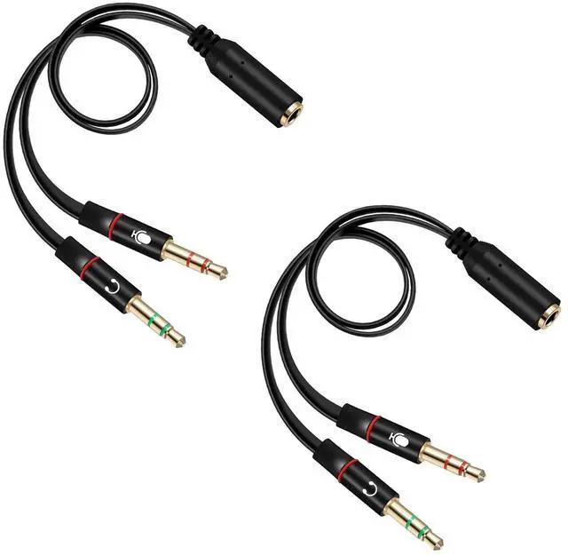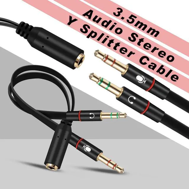 Splitter with two male ports: one for Headphone Jack on your PC/Laptop the other for Mic Jack on your PC/Laptop. The 3.5 mm connector splitter also known as phone jack audio jack or jack plug is a common family of connector typically used for ana log signals primarily audio. 3.5 mm audio Y splitter cable with Oxygen-free copper provide maximum's conductivity and durability Compact design for maximum portability - a great solution to have on hand in your laptop bag. 3.5 mm stereo splitter cable allows you to easily connect your stereo headset Mic to a PC audio port and mic port at the same time. Dual 3 position 3.5 mm jack ideal for connecting two headsets on one audio source let you enjoy your cellphone music together with your friend easily. Black colour