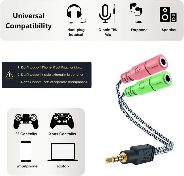 MillSO 3.5 mm headset splitter - This mic and headphone splitter is designed to connect a double-plugs gaming headset to most devices with 3.5 mm TRRS port (mic+audio) such as PS4 headset adapter iPad headset adapter headset adapter for Xbox etc. This audio jack adapter cable features with one 3.5 mm TRRS male and two 3.5 mm TRS female (green for TRS headphones pink for TRS microphone). COMPATIBILITY - This MillSO 3.5 mm audio splitter for headphones and mic supports almost all currently popular audio devices. The 3.5 mm male port for PS4 XB1 PC Smartphone Tablet Notebook Laptop etc.