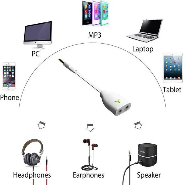 Universal compatibility: No need for lots of different cables if you have this headphone splitter; its compatible with anything that a 3. 5 mm female jack (AUX) is MP3s smartphones tablets laptops & more.
