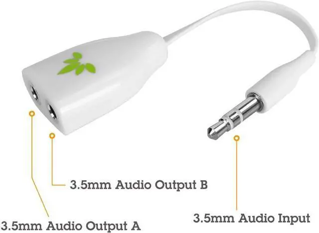 Split Audio: listen to 1 portable device from 2 stereo headphones or speakers with this 3. 5 mm Male to dual 3. 5 mm female Audio Splitter each split output is stereo.