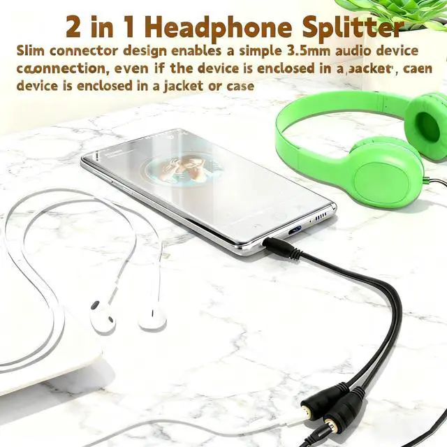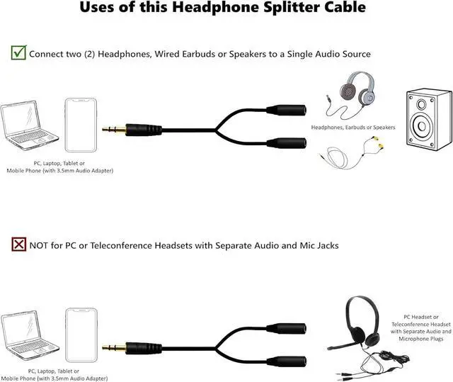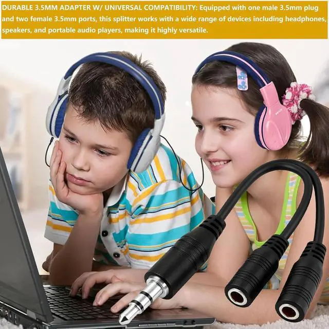 DUAL LISTENING: Allows two people to listen simultaneously by splitting a single audio source into two separate headphone outputsCOMPATIBILITY: Works with most standard 3.5 mm audio devices including smartphones tablets laptops and MP3 playersCOMPACT