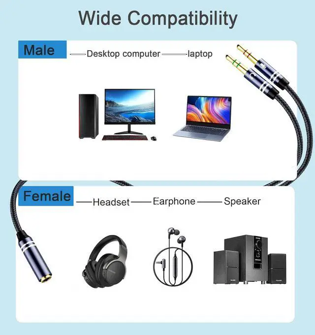 Works with Android/PC/Consoles Compatible with CTIA-standard headsets (PS5/Xbox/Turtle Beach) and laptops (HP/). Not for /Beats earphones. Portable & Reliable Compact 35cm length avoids clutter. Throw it in your backpack survive daily commutes LAN parties or work trips!
