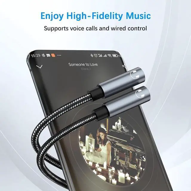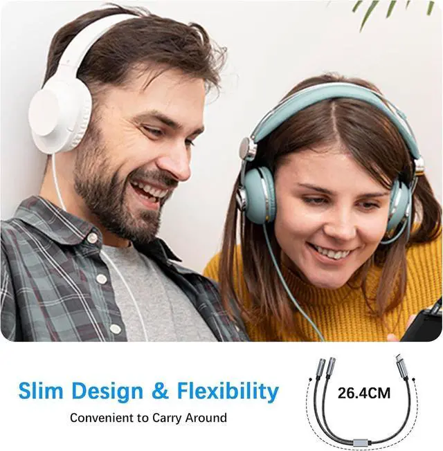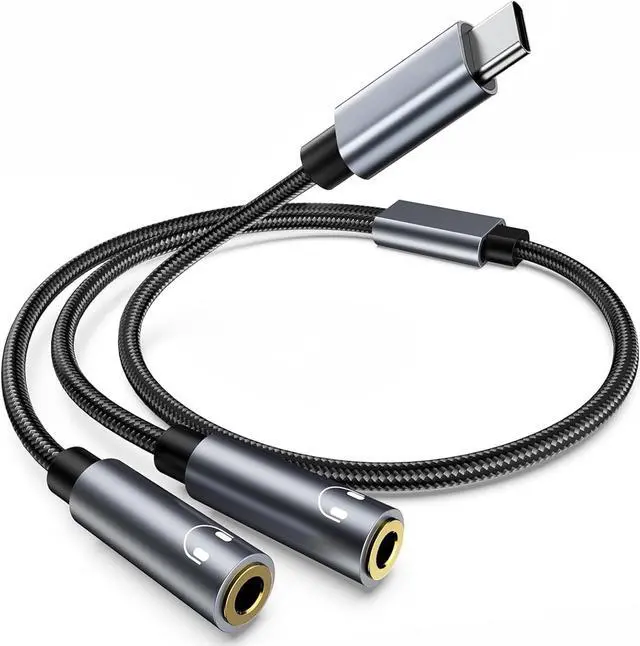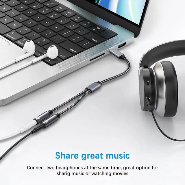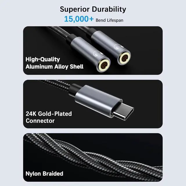 Sound Quality: The usb c audio splitter features 24K gold-plated connectors and a durable nylon braided exterior to ensure optimal signal integrity and longevity. This usb c headphone jack splitter ensures clear and uninterrupted audio transmission delivering exceptional sound quality to both connected devices.