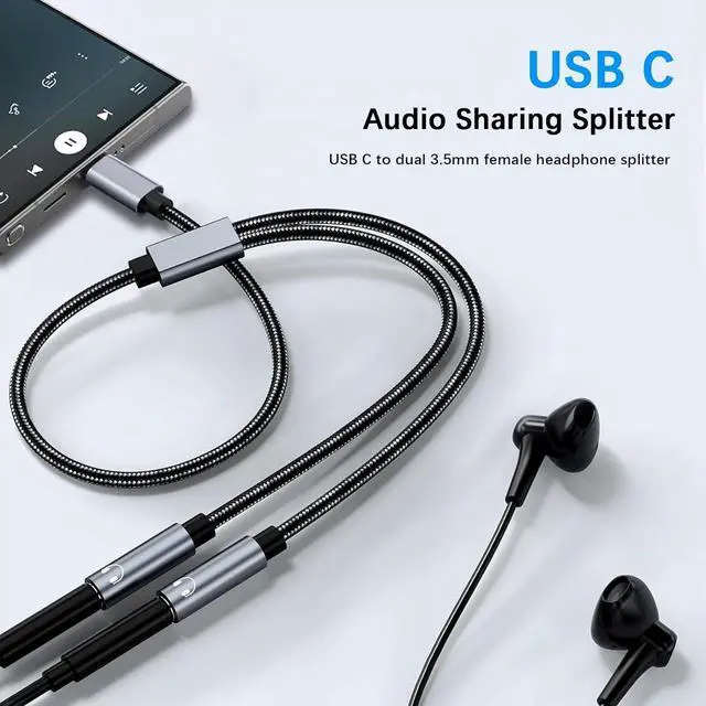 Audio Sharing Splitter: This usb c headphone splitter will convert the signal from ONE usb Type C port into TWO 3.5 mm female Aux port. You don't need to share 1 earbud with your mates when watching movies or music. The usb c dual headphone splitter not only adds more choices to listen to music but offers a simple way to share music or video with your family/friends.
