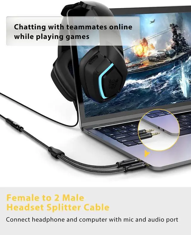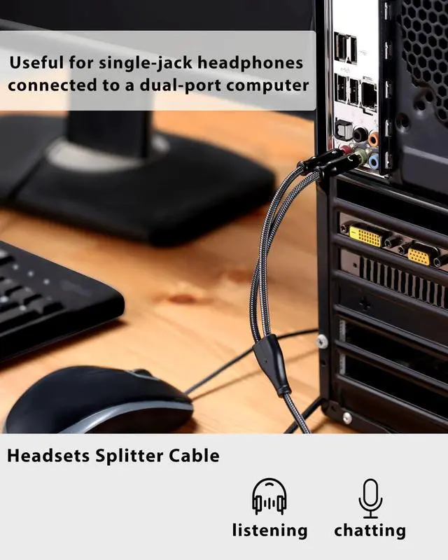 Headphone Splitter for computer: Split PC or Laptop with separate audio and mic jack to headsets of 4-pole 3.5 mm TRRS plug. Connect a CTIA standard combo-plug headset to your PC or laptop that only has a separate microphone and headphone jack.