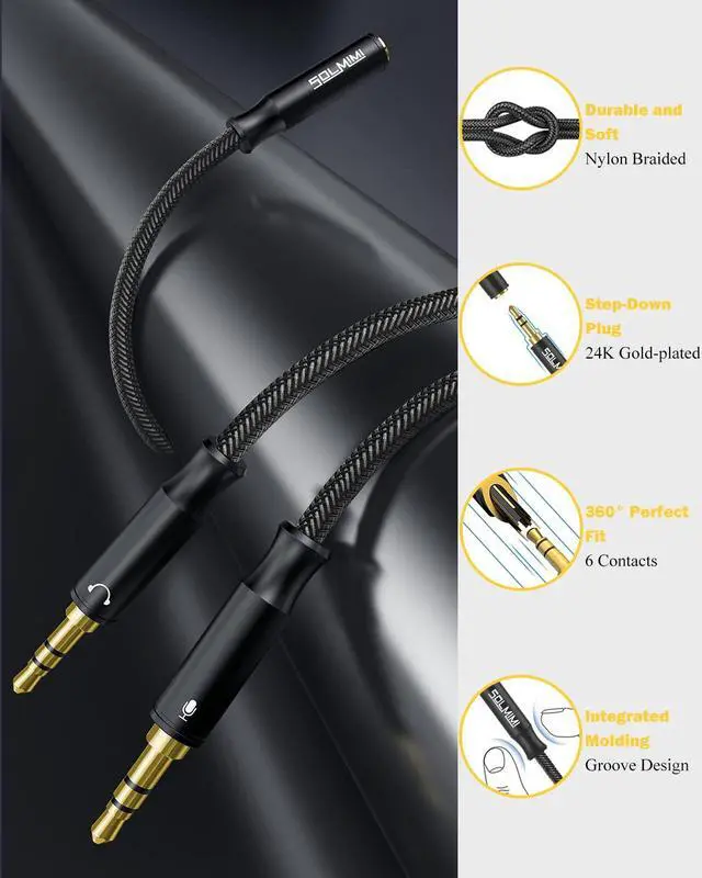 Superior Sound Quality: Mic headphone splitter adopts with pure oxygen-free-copper wires polished 24K gold-plated connector built-in 6 spiral contacts and aluminum shell to ensure higher audio transmission without signal loss and noise.