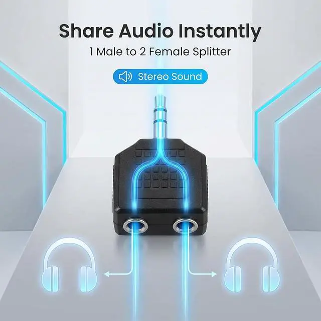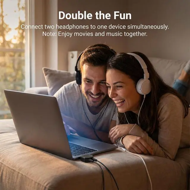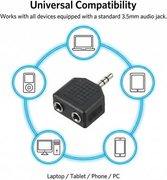 Dual Audio Sharing Made Easy: This 3.5 mm Y splitter adapter lets two people listen simultaneously by converting a single 3.5 mm female port to two male headphone or speaker plugs perfect for sharing music or movies.
