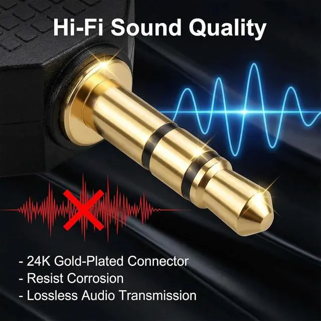 High-Quality Build: 3.5 mm audio splitter adapter feature gold-plated connectors for maximum conductivity and corrosion resistance delivering consistent signal transmission and sound quality for an enhanced experience.