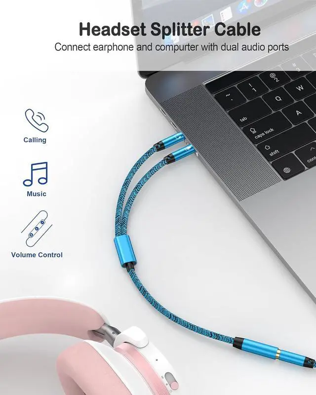 Smart Design: 1. Y Splitter-this headphone splitter features a 3.5 mm female connector that splits into two 3.5 mm male ports allowing you to connect a headset with separate mic and audio jacks to a single audio port; 2. Plug & Play-No extra driver No app. Whether you're using a headphone adapter or a 3.5 mm audio splitter it works instantly on your device. Take it ON-THE-GO; 3. Warm Tips-The mic wouldnt work for original earphones and Beats headphonesWide