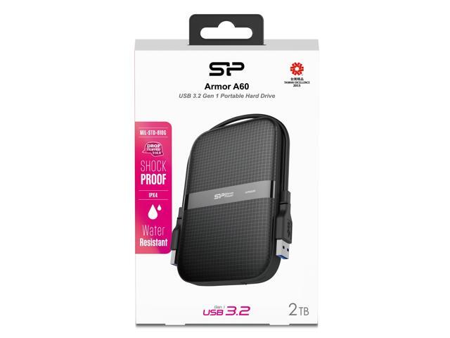 2TB Silicon Power Armor A60 Shockproof Portable Hard Drive - USB3.2 - All-Black Edition