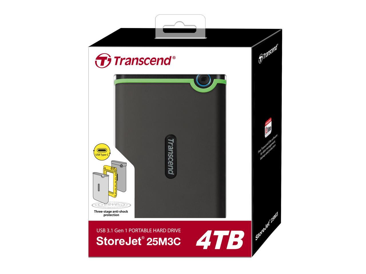 4TB Transcend USB3.1 Type-C StoreJet 25M3C 2.5-inch External Hard Drive Shock-Resistant