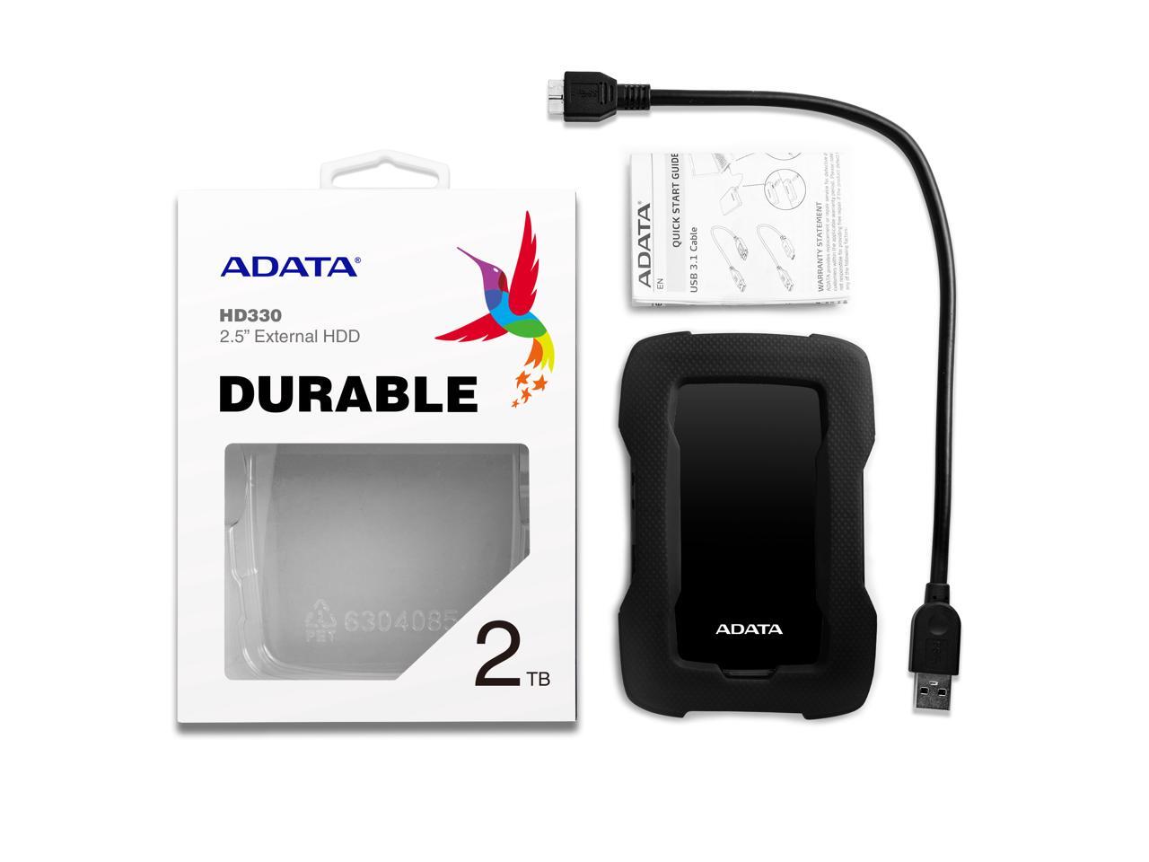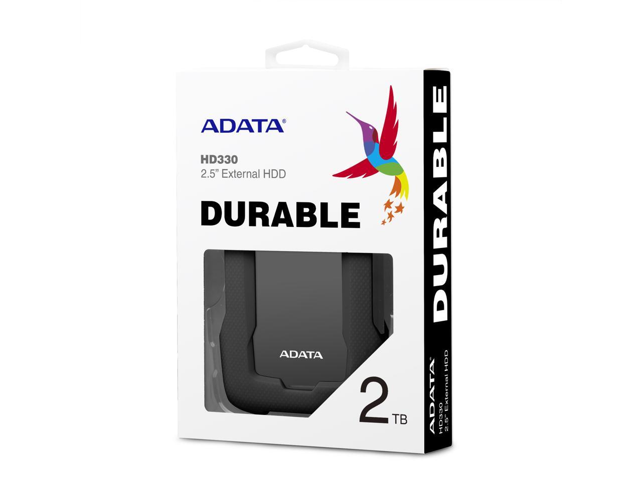 ADATA Durable Series HD330: 2TB Black External USB 3.1 Portable Hard Drive Gaming Console Compatible