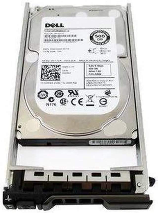 The Dell 55RMX model internal hard drive has a 2.5 inch form factor and a 6Gb/s external data transfer rate. It has a spindle speed of up to 7200 rpm and a 500GB capacity. This SFF drive uses a 6Gb/s SAS (serial Attached SCSI) interface and comes enclosed in a hot-swap tray along with a 1 year warranty.