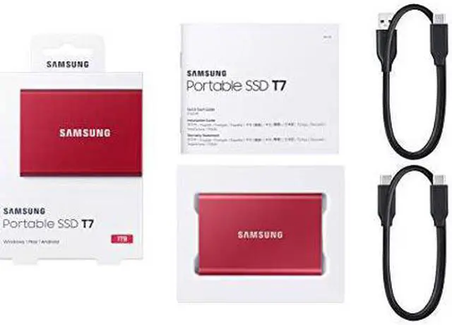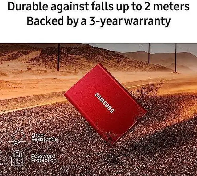 Introducing the T7 1TB Red from Samsung, the ultimate portable storage solution for all your digital needs. With its sleek and vibrant red design, this external solid-state drive combines style and functionality effortlessly. Boasting a massive 1TB capacity, it offers ample space to store and carry your important files, photos, videos, and more, wherever you go.