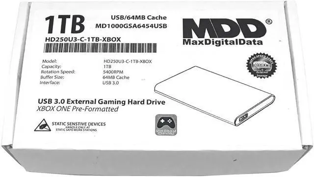 MaxDigitalData Portable Storage System (HD250U3-C) 1TB Ultra Slim 2.5" SuperSpeed USB 3.0 Portable External Gaming XBOX One Hard Drive (Clear) is designed to attract the eyes of user at a glance with durable chassis external XBOX One hard drive. The MaxDigitalData HD250U3-C1TB endeavors top quality design in durable case, with slim trimming, which make the MaxDigitalData HD250U3-C 1TB Slim USB 3.0 XBOX One External Gaming Hard Drive a fine piece of storage device on your palm. You can connect these to your XBOX One Game Console USB 3.0 port to expand your XBOX One storage capacity instantly! It is fully compatible with XBOX One, XBOX One S, XBOX One X Game Console.