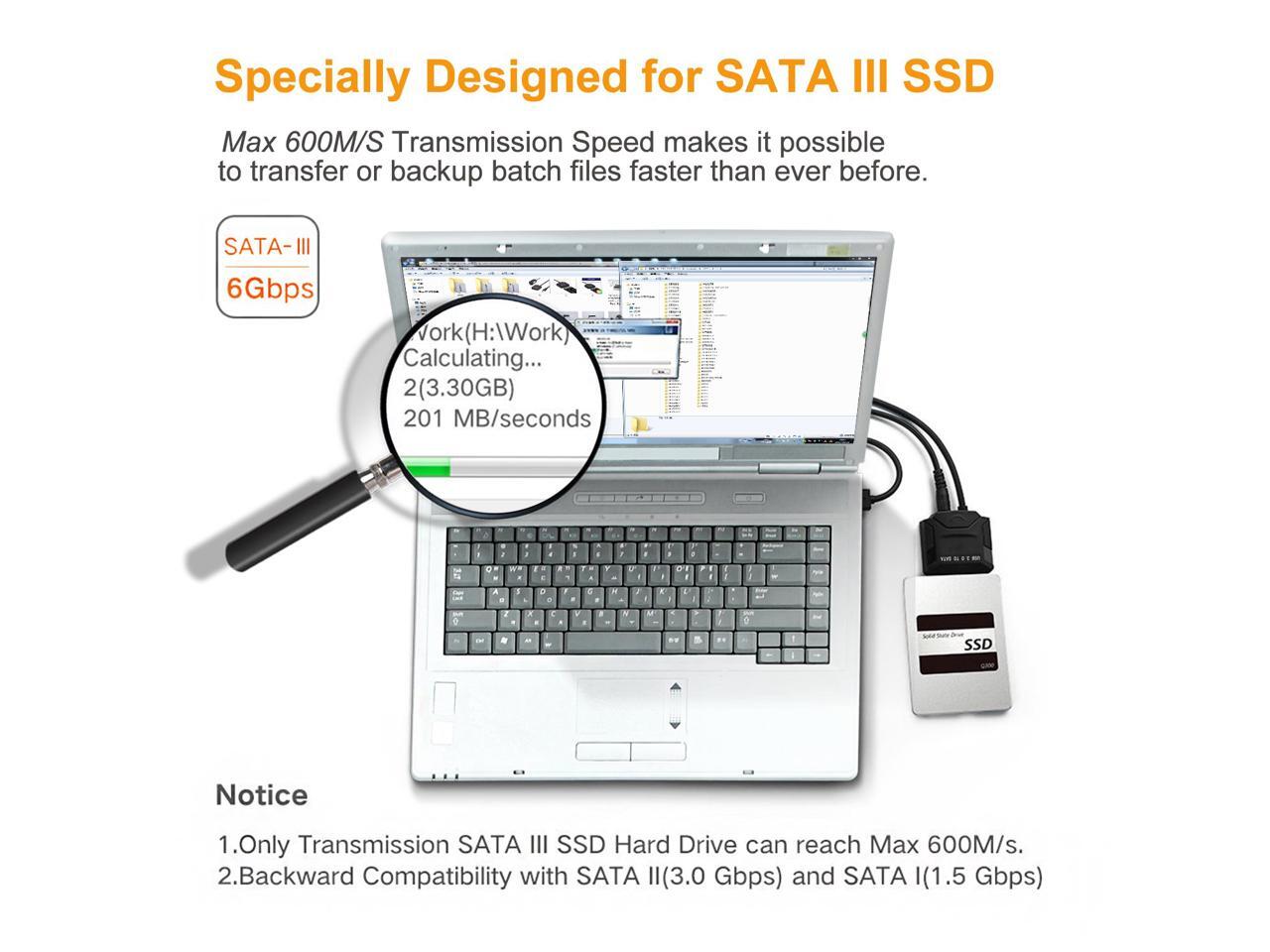 - Excelllent SATA Hard Drive Adapter -- This SATA to USB Cable allows you to connect all any 2.5" or 3.5" SATA HDD/SSD(such as 2.5"/3.5" SATA hdd/sdd, SATA II, SATA III Hard drives) to your computer or laptop through the available USB port. It is great tool for you to duplicate, copy, backup or transfer large amounts of data from one drive to another, greatly saving your time.