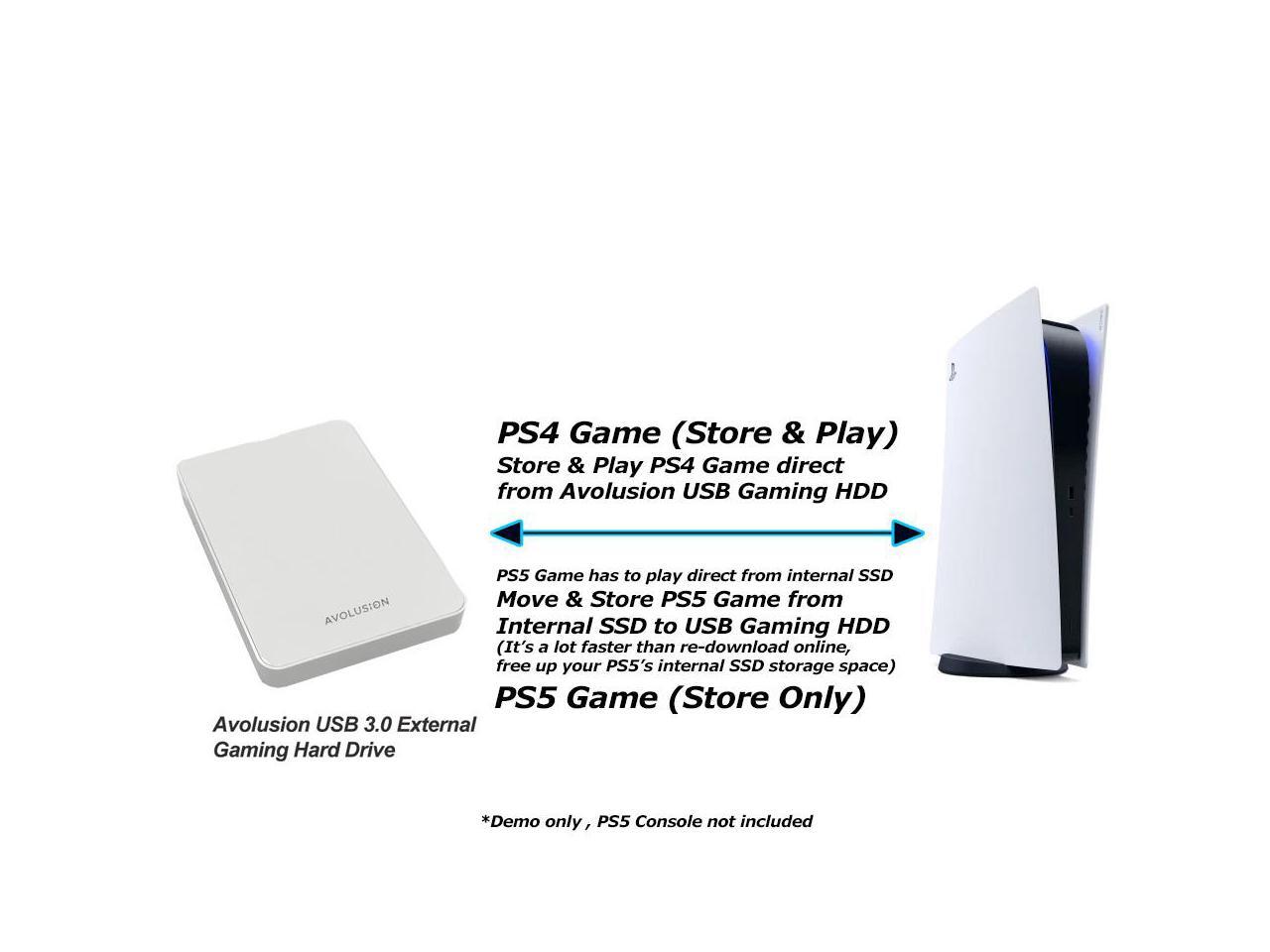 - Compatible with PS5 Game Console, Expand game console storage instantly! NOTE: You cannot download PS5 games direct to USB Hard Drive, It has to download to internal SSD and then "Move/Copy" to USB HDD after that. (about 3 ~ 5 min transfer a game)