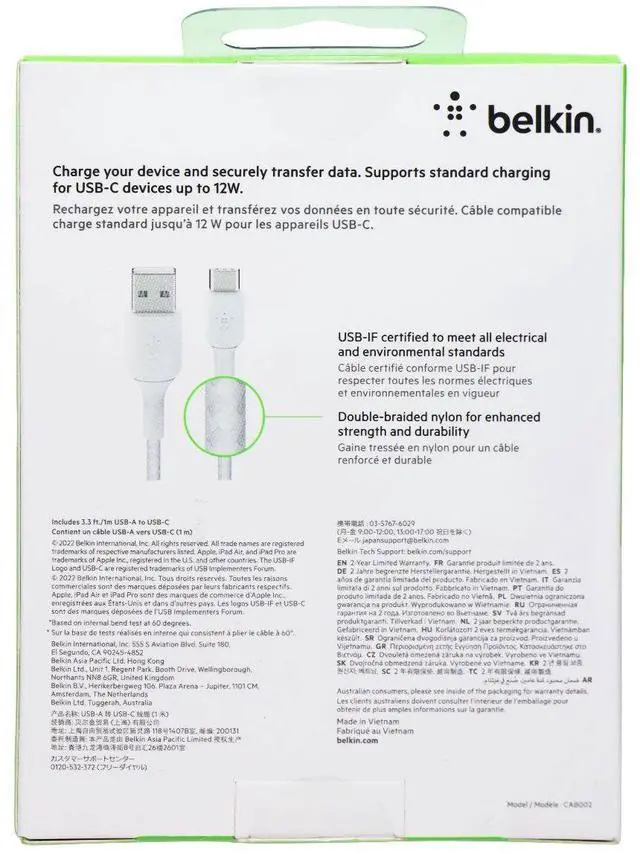 Keep your USB-C devices charged or easily sync music and photos from any USB-A port with durable USB-C to USB-A cables you can use just about anywhere. Made with enhanced braided nylon for added flexibility and strength, tested to withstand 10,000+ bends, and with USB-IF certification, you can count on worry-free performance.