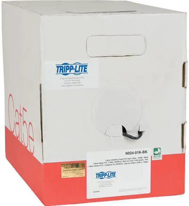 The N024-01K-BK Cat5e 350 MHz Bulk Solid-Core Plenum-Rated PVC Cable is premium cabling designed for Cat5/5e premise applications in air ducts and drop ceilings, such as connecting an Ethernet wall jack to a router, patch panel or switch. Designed for fast transmission and excellent signal quality, this black cable ensures peak performance through your LAN (local area network).