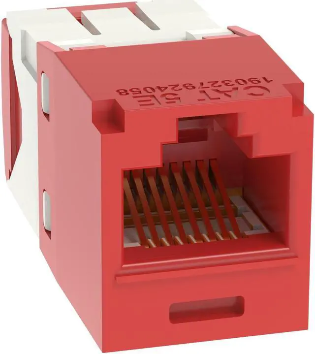 The Mini-Com® Cat 5e UTP RJ45 TG-Style Jack Module is designed to terminate 4-pair, 22-26 AWG twisted pair cable. Each module is 100% factory tested for continuity. Contacts are plated with 50 microinches of gold for superior performance. Jack modules are compatible with Mini-Com Modular Patch Panels and Faceplates. The jack module is Red.
