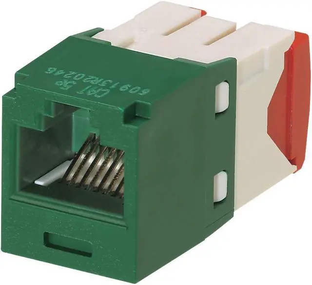 The Mini-Com® Cat 5e UTP RJ45 TG-Style Jack Module is designed to terminate 4-pair, 22-26 AWG twisted pair cable. Each module is 100% factory tested for continuity. Contacts are plated with 50 microinches of gold for superior performance. Jack modules are compatible with Mini-Com Modular Patch Panels and Faceplates. The jack module is Green.