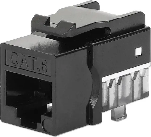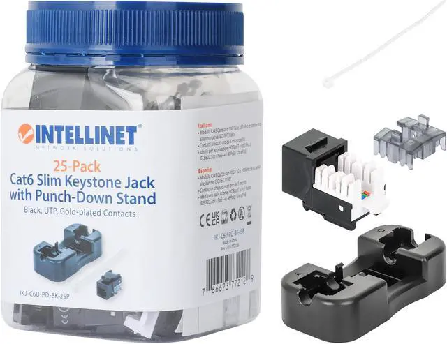 Intellinet Cat6 Slim Keystone Jack with Punch-Down Stand, Black, 25-Pack, For Easy Fit in High-density Patch Panels, UTP, for Solid Wire, Gold-plated Contacts