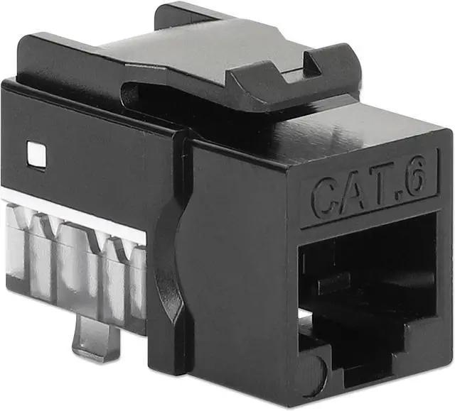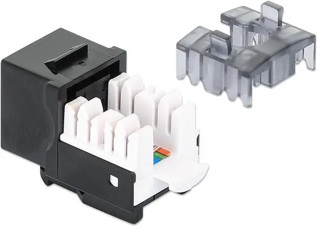 The Slim Cat6 Punch-Down Keystone Jack from Intellinet Network Solutions is designed for easy side-by-side deployment in blank patch panels, wall plates or surface connection boxes. This keystone jack is suitable for solid conductor cables for high-performance network applicationsKEY_TAB up to 10GBASE-T over 55 m (180 ft.) or 1000BASE-T over 100 m (328 ft.) with PoE applications up to IEEE802.3bt / PoE++ / 4PPoE / Ultra PoE. For high signal integrity, it is equipped with gold-plated contacts.