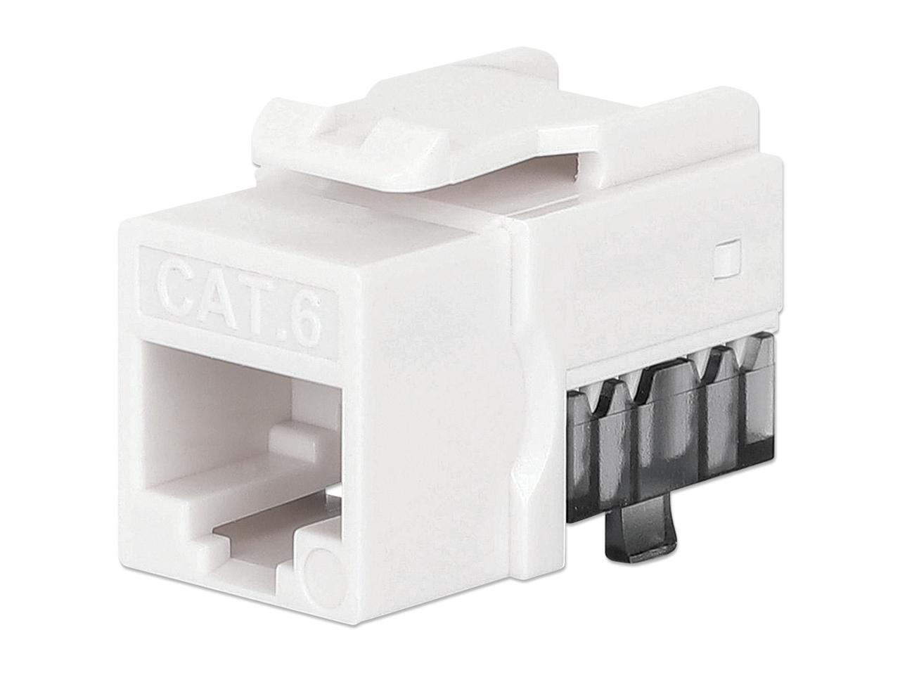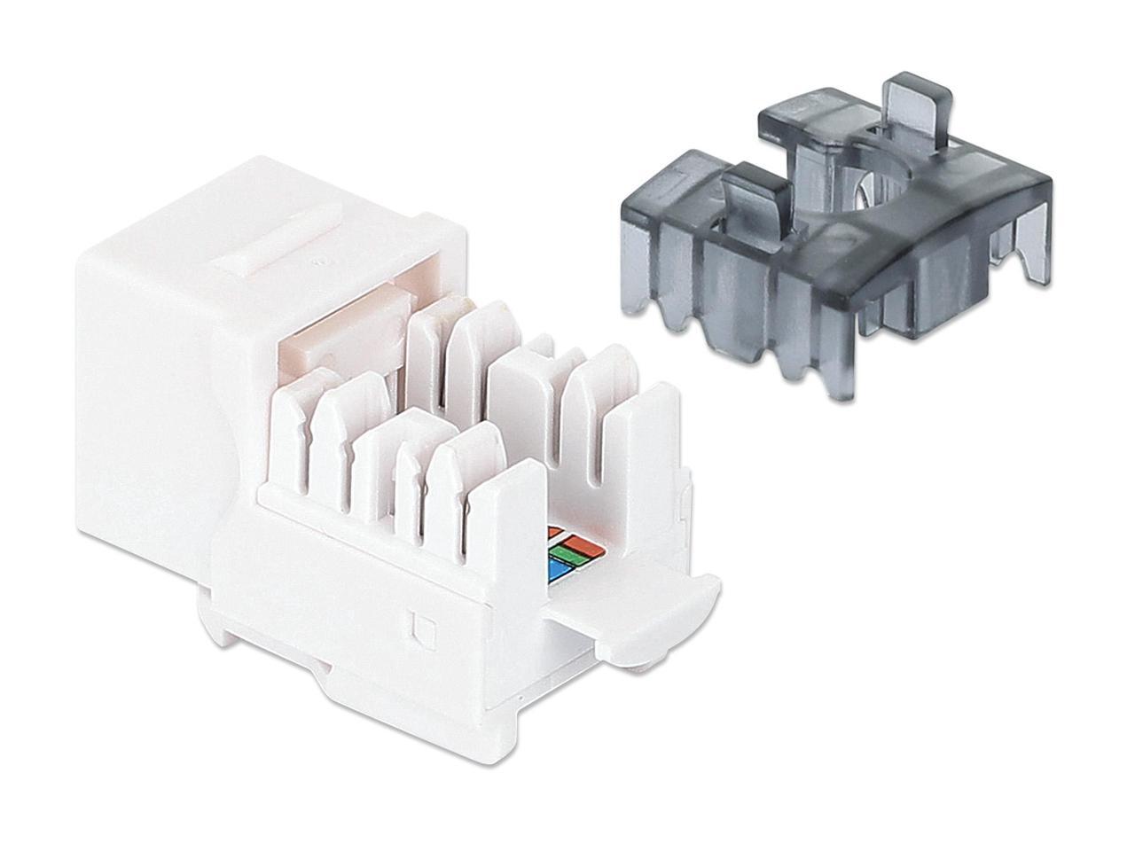 Intellinet Cat6 Slim Keystone Jack with Punch-Down Stand, White, 25-Pack, For Easy Fit in High-density Patch Panels, UTP, for Solid Wire, Gold-plated Contacts