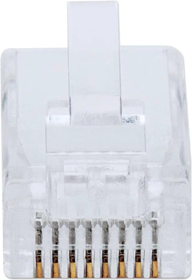 Intellinet Network Solutions presents the ultimate solution for your networking needs with our Cat6 RJ45 Modular Plugs, designed for both solid and stranded wires to seamlessly terminate your unshielded patch cables. Our 8-position, 8-contact (8P8C) modular plugs offer versatility and reliability, accommodating CAT5e, CAT6, and CAT6a cables in both unshielded and shielded forms. With options like our standard 15 micro-inch gold contacts or the high-quality 50 micro-inch contacts available in our Premium and Pro lines, these plugs ensure corrosion-free connections for optimal performance.