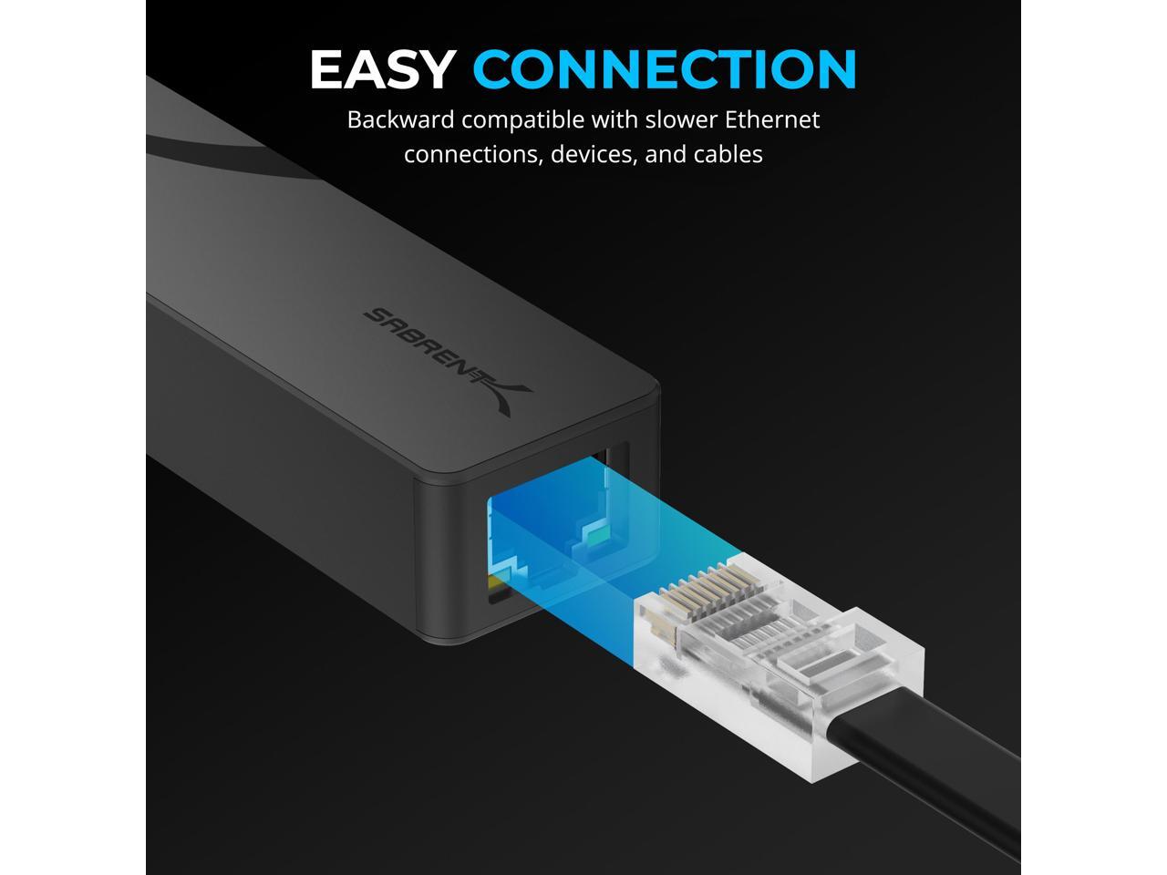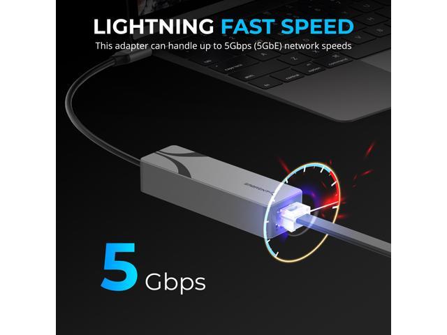 - Fast 5GbE Networking: Enjoy blazing 5Gbps (5GbE) network speeds with the SABRENT USB Type-C to 5G Ethernet Adapter (NT-C5GA). Backward compatible with multi-gig (2.5GbE), 1GbE, Fast Ethernet (100Mbps), and regular Ethernet (10Mbps) connections for versatile performance.
