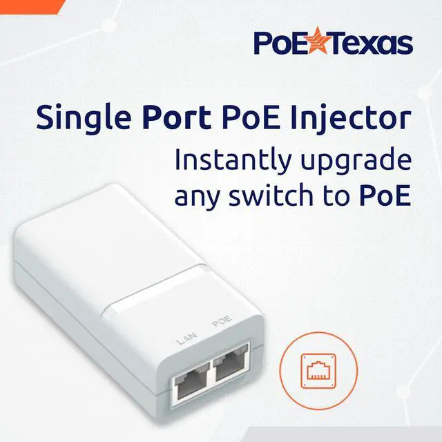 Upgrade your network to Power over Ethernet with this all-in-one solution. Includes integrated 48 Volt, 15 Watt power supply delivering power and 10/100/1000 Gigabit data through one cable to 802.3af devices up to 328 feet away. No separate power supply needed—plug into standard wall outlet.