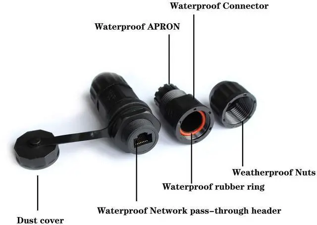 1.The Waterproof RJ45 Connector are IP 67 Compliant. Prevented from temporary immersion for 30 min in 1 meter depth of water. Prevent the network parts from moisture, dirt and insects for quality connections.