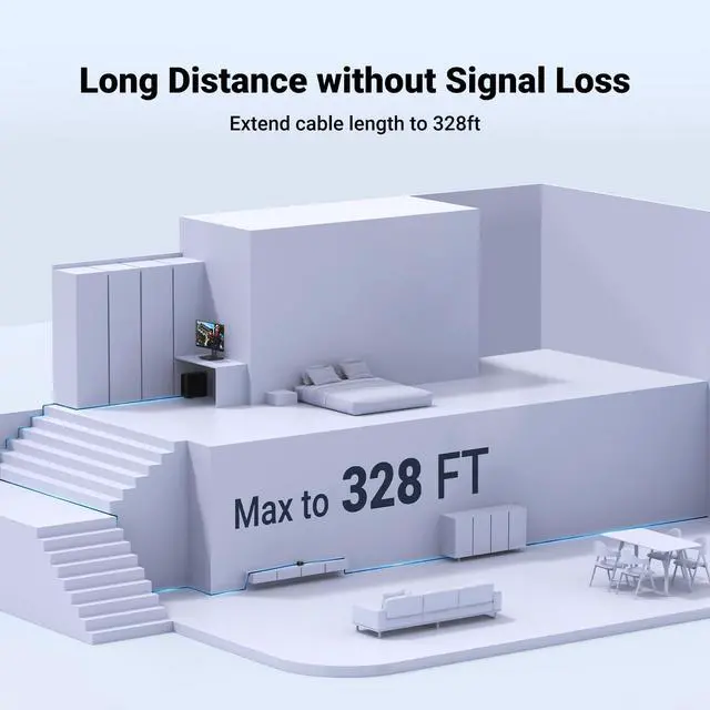 328ft Effectively Extend: UGREEN ethernet extender is ideal for extending ethernet connection, and support up to 328ft long-distance transmission. Wire the house flexibly and smartly. Never worry about the network cable is not long enough anymore