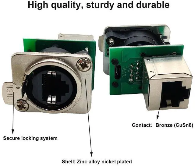 RJ45 pass through socket, D-type metal flange with lock and installation screw, this DATA interface series is reinforced and lockable.
