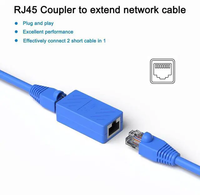 Extender is ideal for extending ethernet connection by connecting 2 short network cables together can help you solve the problem that the network cable is not long enough. It is easy to install, you only need to plug the two network cables that need to be extended into the RJ45 extender.