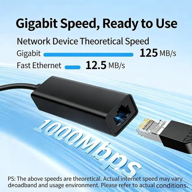 Gigabit Speed for Fast and Stable Networking This USB C to Ethernet adapter adds a reliable RJ45 port to your device and supports fast wired internet performance for file transfers, HD video streaming, online meetings and low-latency online gaming.