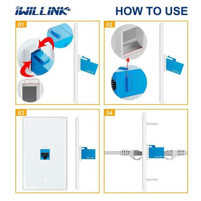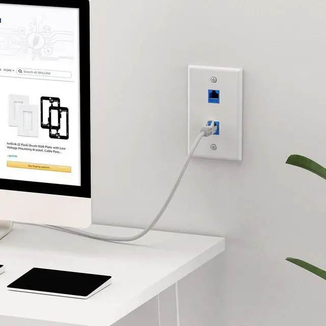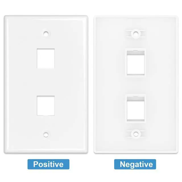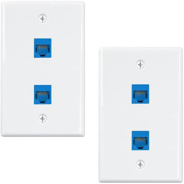 The Iwillink 2 Port Cat6 Ethernet Wall Plate for neat, safe and convenient cable access. Disguise the cable to your router or network switch behind the wall for a professional-looking installation. Ethernet wall plug can be mounted with a standard-sized single gang low voltage mounting bracket. Ethernet keystone is compatible with Cat5, Cat5e, Cat6 wires.