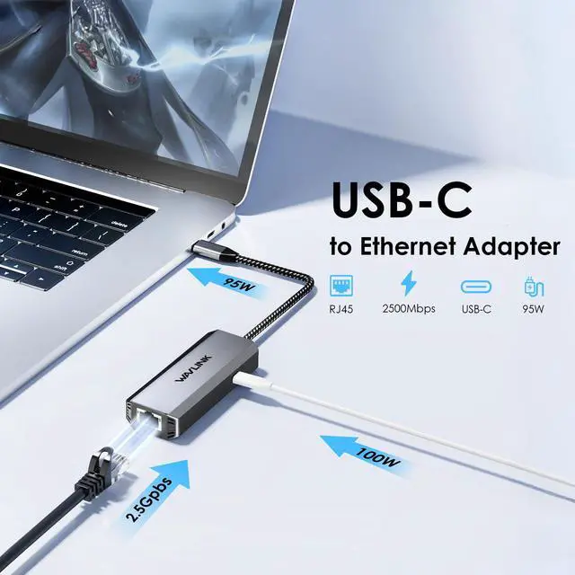 USB C to Ethernet Adapter 2.5 Gbps, USB to 2.5G Ethernet Adapter with 95W Power for Laptop, USB-C to RJ45 Network Converter (Thunderbolt 4/3 Compatible) for Windows, Mac OS, iPad OS and More