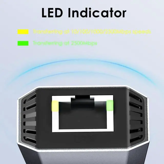 Instant Internet: Upgrade your network without updating your cables. With the 2 indicators, you can easily check the network speed. 2.5 Gigabit Ethernet signals are designed to work on Cat 5e or higher rated Ethernet cord, does not exceed 100m in length, just pair your USB Ethernet Adapter with 2.5Gbps-capable switches/routers