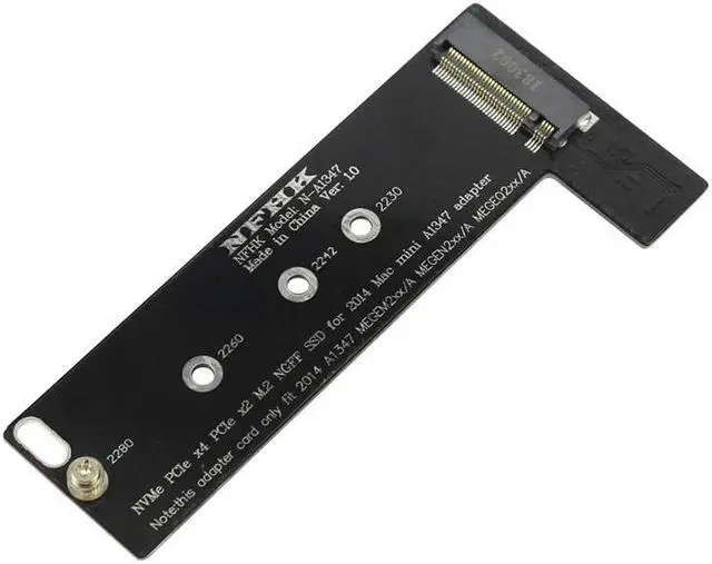 This riser card only supports the later version of the Mac mini A1347 (MGEM2xx/A MGEN2xx/A MGEQ2xx/A), and cannot support the 2012 version of the 2011 version and the 2010 version of the Mac mini A1347!M.2 NGFF M-Key NVME SSD Adapter Card for 2014 Macbook Mini A1347 MEGEN2MEGEM2 MEGEQ2 .The adapter can covert the NGFF M-Key SSD to the 2014 Macbook Mini A1347 MEGEN2 MEGEM2 MEGEQ2.Compatibility With: 2014 Macbook Mini A1347 MEGEN2 MEGEM2 MEGEQ2.Colour:blackMaterial:ABSPackage Contents:1* NVME M key M.2 to 2014 Macbook Mini A1347 MEGEN2 MEGEM2 MEGEQ2 SSD Adapter CardNote: The Nvme SSD only work for Mac OS HiSierra.Note: The adapter only work for M-Key SSD,cannot work for B-Key socket.Only the above package content, other products are not included.Note: Light shooting and different displays may cause the color of the item in the picture a little different from the real thing. The measurement allowed error is +/- 1-3cm.