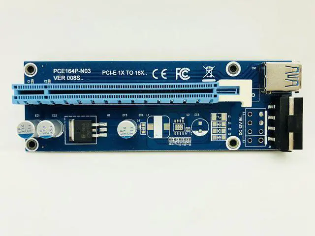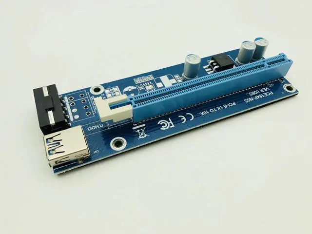 Features:· Brand new and high quality.· PCI-E 1x to 16x Mining Machine Enhanced Extender Adapter With Power Cable· With power cable and USB 3.0 cable, Digging Preferred, Stable anti-burn· More safer, more efficient, more practical· With 3x solid capacitors, making graphics power supply more stable and secure.· With SATA 15pin Male to 4pin power cable, strengthen power supply, so that graphics power from the motherboard independent, so multi-card reduce motherboard burden.· PCI-E 16x slot with lock for easy removal and fixed graphics card, so that graphics will not fall from the slot.· Compatible with 1x, 2x, 4x, 8x,16x card· USB Cable length: 60cm · Board Size:12.8cm x 4.3cm x 1.5cm(Approx.)