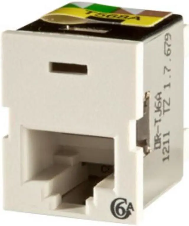 Clarity 6a TracJack, ETL verified to TIA Category 6a component specification. Front-loading and front removable. New universal T568A/B wiring label and tapered wiring towers simplify termination. Center tuned to Clarity 6a patch cords for optimum performance
