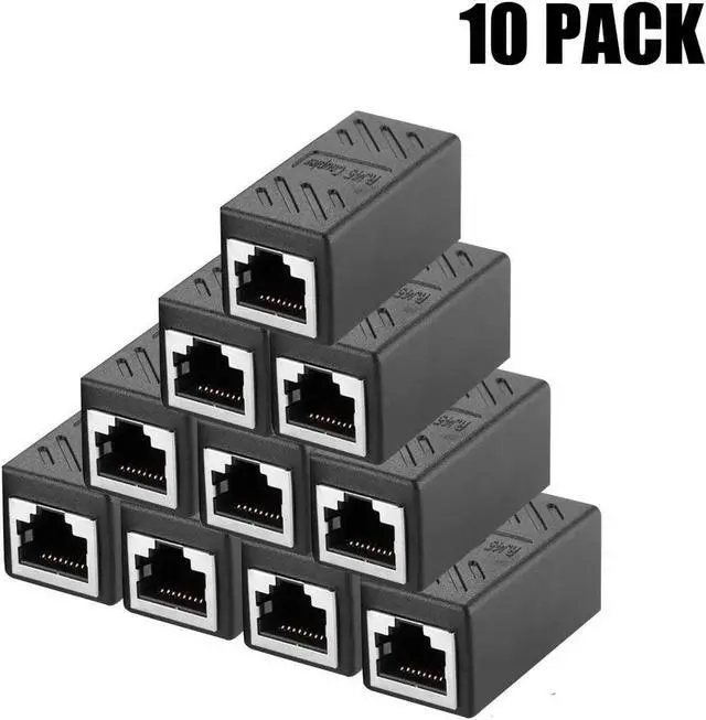 RJ45 Coupler in Line Coupler Cat7 Cat6 Cat5e Ethernet Cable Extender Adapter Female to Female (Black, 10 Pcs)
