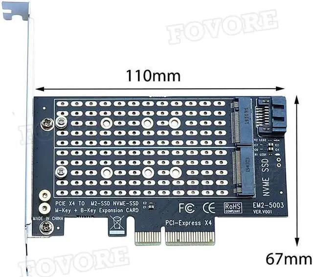 Support size: 22*30 mm, 22*42 mm, 22*60 mm, 22*80 mm M.2 NGFF SSD.