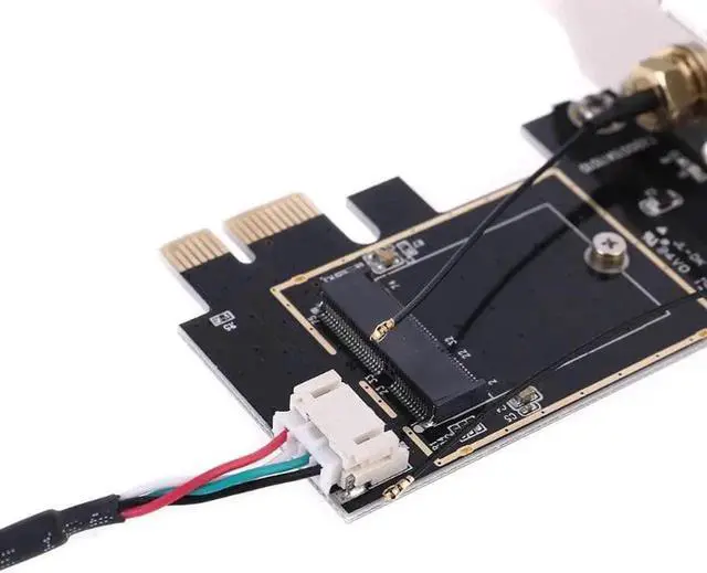 The PCI-E M.2/NGFF Card passive adapter is designed for wireless application on desktop PCs that convert half-size MiniCard(NGFF ) to USB 9pin Header or standard PCI-Express 1x slot.