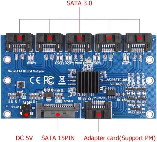 Expansion Card 1 to 5 Port 3.0 Controller Card Motherboard 6Gbps Multiplier Port Riser Card Adapter for HDD Computer