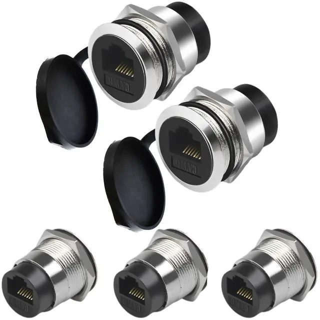 IP67 Waterproof Design: Equipped with an additional cover, this RJ45 panel mount bulkhead provides a waterproof and dustproof solution, ensuring a secure Ethernet pass-through coupler connection in challenging environments.