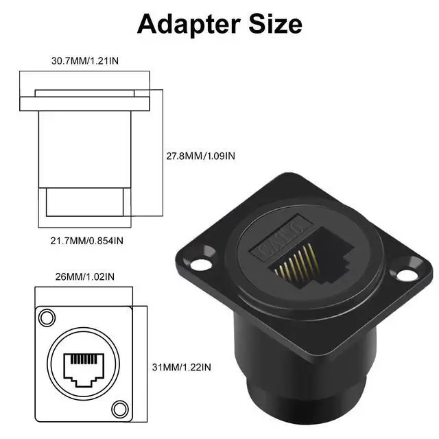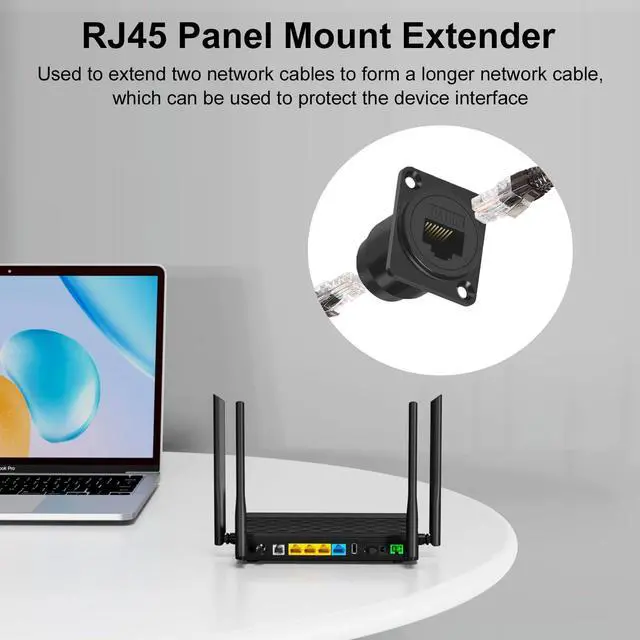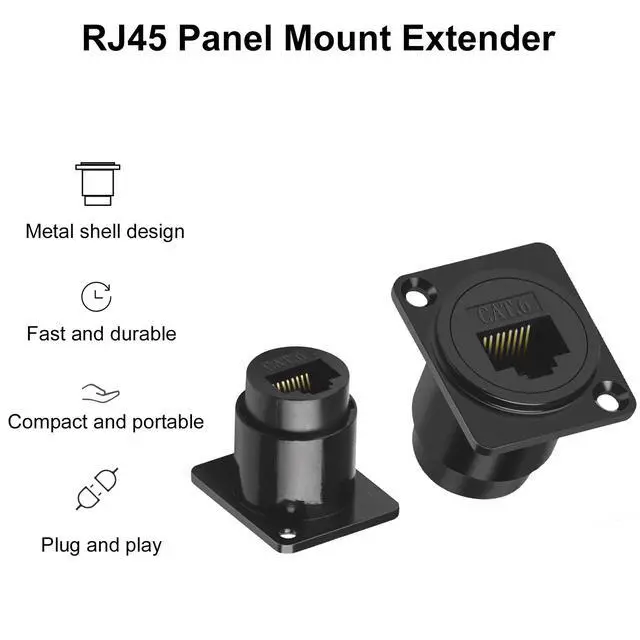RJ45 Panel Mount Extenderused to extend two network cables to form a longer network cable, which can be used to protect the device interface and extend the life of the device.